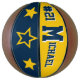 Es handelt sich um einen Basketball in voller Größe mit zwei Panels, die mit einem Monogramm-Namen (großer erster Buchstabe) und einer einheitlichen Zahl in beliebten Unis gestaltet wurden. Dieser hier ist in blau und in Labyrinth dargestellt. Das zweite Panel hat Teamfarben mit drei Sternen. Text, Kunst und Farben können nach Belieben entfernt oder geändert werden. Eine Kontrollleiste kann für Autogramme, usw. weiß verlassen werden.