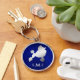 A silver silhouette image of a Poodle is placed against a vivid blue background on this attraktiv key chain. Below the dog image is your three letter monogram. Beautiful, und perfekt for anyone who loves in Poodle!