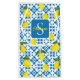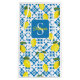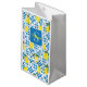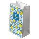 This gift bag features a watercolor French country tile and lemon pattern in blue and yellow. It is easily customizable with your name and monogram,