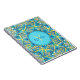 Ein farbenfrohes Notebook mit einem schönen und leuchtenden Blau-, Gelb- und Türkismuster aus dem blauen Mandala-Muster mit einem Monogramm in der Mitte. Ideal für Yoga Instruktoren oder Zentren und Heiler. Dieser Mandala repräsentiert die Erde, den Himmel und unsere schöne Sonne. Eine Hommage an die Wunder der Schöpfung, die unser Herz erwärmen und uns Hoffnung geben, ein besseres Morgen zu schaffen. Handgezeichnet und von SunFreeStar gemalt.
