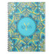 Monogram Blue Turquoise Floral Mandala Muster Notizblock