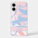 Monogram Blue White Pink Marble Swirl Case-Mate iPhone Hülle