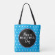 Stilvoll umkehrbare weiße Polka Punkte auf himmelblauen Hintergrund. Die Vorderseite der Tasche hat große dunkelblaue und schwarze Kreise, die Sie mit Ihrem mit Monogramm Original in weißem Text personalisieren können. Die Rückseite der Tasche hat den Wortlaut, haben Sie einen schönen Tag. Verlass den Text, füge deinen eigenen ein oder lösche ihn, um nur ein großes Kreisbild zu zeigen. Frische modische, geometrische Damensbekleidung für jede Jahreszeit. Original Designs © TamiraZDesign. www.zazzle.com/tamirazdesigns