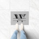 Auf dieser markanten Türmatte befindet sich Ihr Name im Skript in der Mitte eines geteilten blüh-Buchstaben W. Der Name und der Buchstabe sind schwarz und auf einem mittel- bis hellgrauen Hintergrund dargestellt. Wenn Sie möchten, können Sie die Hintergrundfarbe ändern, indem Sie Design bearbeiten wählen. Sie können auch den Schriftart des Namens ändern. Eleganz für Ihren Einstieg!