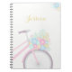 Monogram Blume Bicycle Niedlich Hipster Notebook (80 Seiten B&W). Rosa Fahrrad mit Blumenkorb. Blume, Beeren und Blätter (rosa, blau, türkis, goldfarben). Goldenes Monogramm. Modern, niedlich und romantisch.