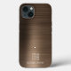 Monogram Bronze Brown Brushed Metal iPhone 13 Fall. Vollständig personalisieren Sie dieses elegante braune Imitat gebürstete metallische Druck iPhone 13 Gehäuse mit Ihrem Monogramm und Namen.
