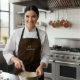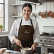 Elegantes Monogramm auf Ihrer persönlichen Schürze Brauner Farbhintergrund mit weißem Skript und einer goldenen Farbe Monogramm.