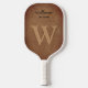 Monogram Brown Leather Script Name Rustic Pickleball Schläger