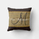 Monogram Brown Rustic Burlap Jute Kissen