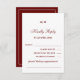 Elegant and refined, this personalized, Minimal Burgundy Christian Wedding RSVP card features a minimalist, lined design that brings modern sophistication to your wedding stationery. Showcasing the couple's monogram, this chic response card pairs classic white typography and a script font with a heartfelt bible verse, against a chic wine toned background for a timeless and stylish look. Perfect for a simple, God-centered modern wedding, this RSVP card blends clean lines with subtle elegance, making it an ideal choice for couples who love understated beauty. Customize easily to match your unique wedding style.