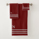 Monogram Burgundy Dark Red Light Gray Strichen Badhandtuch Set