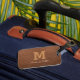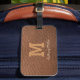 Modernes, braunes Leder, Drehbuch, monogramm Gepäckanhänger. Personalisieren Sie es mit Ihrem Initial und Namen.