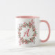 Dies ist eine elegante Monogramm-Tasse mit einem Kranz mit Weihnachtsbeeren und Blätter in Rosa und Grün. Der Buchstabe in der Tasse ist mit dem Buchstaben des Empfängers anpassbar.