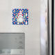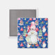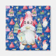Weihnachtsmuster Blue Santa Gnome für Ferien Küchen Magnet. Ein blaues Hintergrundmuster mit Gnomen, Geschenken, Heiligen, Bonbons, Weihnachtsbäumen und der Tasche des Weihnachtsmanns. Personalisieren Sie dies mit Ihren Monogrammen.