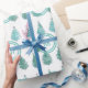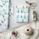 Dekorieren Sie Ihre Weihnachtsgeschenke mit diesem modernen gemusterten Weihnachtsbaumpapier. Die Einrichtung ist schlicht und in Grün- und Türkistönen gehalten. Passen Sie es mit Ihren Initialen oder der Ihrer Familie an. Original Wasserfarbe © Michele Davies.
