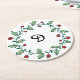 Monogram Christmas Wreath Runder Pappuntersetzer