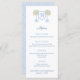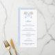 Ein Menü-Design in hellblau und dunkelblau (mit orangefarbenen Akzenten, die von meinen eigenen Aquarellbildern eines stilisierten Orangenbaums geliefert werden). Das Muster auf der Rückseite wurde von mir digital erstellt. Der Monogramm-Buchstabe im Wappen könnte der erste Buchstabe des Familiennamen oder der Vorname des Honoree sein (Sie können auch auf das Entwurfstool zugreifen und diesen ganz löschen, um nur den bzw. die Baum(s) verlassen. Sie können auch die Kontrastfarbe auf der Rückseite (derzeit hellgrün) ändern, indem Sie die Hintergrundfarbe auf der Rückseite ändern.