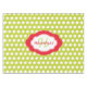 Weiße Polka dots auf kalk grünen Weihnachtstablett mit einem mittleren gerahmten Banner in Weiß und Rot mit rotem Text Bereich, um Ihren Nachnamen, grüner Text Bereich, um Ihre Monogramm erste hinzuzufügen!