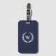 Monogram Classic Elegant Blue Luggage Tag. Klassisches weißes Lorbeer-Monogramm auf dunkelblau. Elegant und beeindruckend.