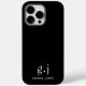 Ein schwarzes iPhone-Gehäuse mit einem einfachen, sauberen, modernen, minimalistischen weißen Monogramm mit einfachen Serif-Schriftzeichen. Ein Satzzeichen (Periode) teilt den ersten und letzten ersten als ein einfaches Gestaltungselement auf, das diesen typografischen Stil als modern und sauber definiert. Ihr Name im Großserifentyp. Einfach, sauber und modern.