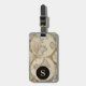 Gepäckanhänger mit einer klassischen Vintage Reise-Weltkarte, Monogramm Initial auf einem schwarzen Kreis Monogramm Rahmen, Name und Adresse Informationen auf einem schwarzen Hintergrund. Personalisieren Sie Ihre Monogramm-Initial-, Name- und Adressinformationen mithilfe der einfachen Vorlagen. Schriftart, Schriftart, Schriftart und schwarze Hintergrundfarbe sind anpassbar.