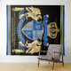 Monogram Coat of Arms Blue Gold Eagle Crown Emblem Wandteppich