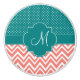 Mit Monogramm Korallenrosa und aquamarines Design Abendessen Keramik Drehknopf. Korallenrosa und Zickzack Korallenmuster und aquamarin-weißes Polka-Punktmuster.