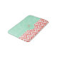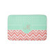Mit Monogramm Korallenrosa und Minzgrün Design Badematte. Korallenrosa und Zickzack Muster und Pollengrün-Weiß-Pollenpunktmuster.
