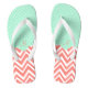 Mit Monogramm Korallenrosa und Minzgrün gestalten Flip Flops. Korallenrosa und Zickzack Muster und Pollengrün-Weiß-Pollenpunktmuster.