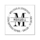 Eine moderne, stilvolle Briefmarke mit einem großen Initial in der Mitte, teilweise mit einem Familiennamen mit Vornamen und Adresse, die in einem perfekten Kreis um sie herum angeordnet sind. Bitte beachten Sie, dass Sie die eingegebenen Informationen möglicherweise anpassen müssen, indem Sie einige Zeichen oder Leerzeichen hinzufügen oder löschen, um den Namen und die Adresse korrekt anzupassen.