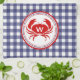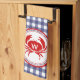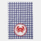 Ein Küchentuch mit blauem Gingham-Design. Personalisieren Sie Ihre Monografie über die Abbildung der roten Krebse.