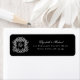 These elegant black and white formal wedding return address labels feature an ornate vintage style monogram crest with fancy script calligraphy for the initials of the bride and groom. Find matching products in the collection, or message me through Zazzle Chat for more products and design tweaks.