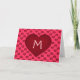 Diese Karte weist ein Muster von sich wiederholenden roten Herzen auf, übertrieben von einem großen Crimson-Herz mit einem Monogramm-Initial. Die Karte ist innen leer - wartet auf Ihren personalisierten Hinweis oder auf Ihren benutzerdefinierten Text.