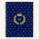 Monogram, Crown, Laurel & Gold Sterne auf Navy Blu Notizbuch