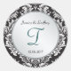 Monogram Damask Schwarz-weißer Hochzeitsticker Runder Aufkleber