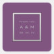 Monogram Dankeschön Graurahmen Silver Wedding Lila Quadratischer Aufkleber