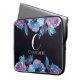 Monogram Dark Blue mit Lila und blauen Blumen Neopren Laptop Schlauch Stilvoll und personalisiert! Passen Sie Ihren eigenen Initial und Namen an, um ein einzigartiges Design zu erhalten.