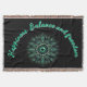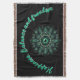 Mit dieser Werftdecke mit einem dunkelgrünen bösen Augensymbol auf schwarzem Hintergrund lassen sich Wärme und Bedeutung vermitteln. Mit Monogramm mit "Glück, Balance und Freiheit" ist es eine perfekte Mischung aus Komfort und Symbolik. Ob über einen Stuhl gezogen oder für entspannende Momente genutzt, dieses Stück verleiht Ihrem Wohnraum eine durchdachte Touch.