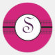 Monogram Deep Pink Black Lace Deep Raspberry Runder Aufkleber