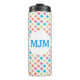 Einen Becher so einzigartig, wie dein Lieblingsgetränk! Diese Monogram Diamond Pattern Thermal Tumbler zeichnet sich durch einen weißen Hintergrund mit orangen, rosa, blauen, korallenfarbenen und Limonen Diamantformen aus. In der Mitte ist ein weißer Kreis für das Monogramm. Vollständig anpassbar.