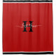 Roter, schwarzer und weißer Duschvorhang mit Nachname und Erstmaliger mit schwarzem Rand und schwarzem Initial. Hintergrund kann beliebig sein, wie auch Schriftart. von HAMbyWhite Glove alias HAMbWG