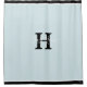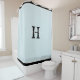 Die Duschvorhänge sind in hellblau, schwarz und weiß mit Nachnamen und der erste mit schwarzem Rand und schwarzem Initial. Hintergrund kann beliebig sein, wie auch Schriftart. von HAMbyWhite Glove alias HAMbWG