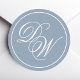 Monogram Dusty Blue Elegant White Script Initials Runder Aufkleber
