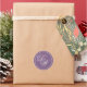 Auf einem staubigen, lila Hintergrund, in einem weißen Kreis, gibt es ein elegantes Monogramm aus 2 weißen Initialen, die in einem eleganten Kalligraphieskript geschrieben sind (die Standard-Buchstaben sind D und W). Es kann zum "Abdichten" einer Hochzeitseinladung verwendet werden, mit den Initialen der Braut und Bräutigam, aber auch für gewöhnliche Post, mit den Initialen des Vor- und Nachnamens.