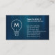 Monogram Electrician Electrician Electrical Contractor Visitenkarte verfügt über ein Leuchtensymbol über eine blaue Metallic-Textur in Imitaten. Ideal für elektrische, elektrische, elektrische Unternehmer, Elektrizität, Bauunternehmer, Handwerker, Hausreparatur, Zuhause-Reparatur.