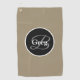 Das elegante, braune, schwarze Golftücher hat einen soliden braunen Hintergrund mit einem großen schwarzen Kreis-Design, der in weiß umrissen ist. Der Monogramm-Nachname wird kreisförmig mit dem vollständigen Vornamen in Weiß zentriert. Dieses Golfhandtuch ist ein tolles Geschenk für Geburtstage, Vatertag und mehr!