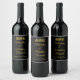 Monogram Elegant Black and Gold Wedding Weinetikett