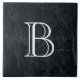 Eine elegante, schwarze Marmorsteinstruktur. Schnitte, Scrapie, Narben und zufällige Zeichen verleihen ihm Tiefe und Persönlichkeit. Personalisieren Sie Ihre erste / Monogramm in einem fett-weißen Schriftart.