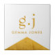 Eine elegante Keramik in Gold und Weiß für Zuhause oder Geschäftsleute, mit einem schlichten, modernen, minimalistischen Goldmonogramm mit einfachen Serif-Schriftzeichen aus Kleinformat und einem Imitat mit Goldfolie-Dreieck-Akzent auf Weiß. Ein Satzzeichen (Periode) teilt den ersten und letzten ersten als ein einfaches Gestaltungselement auf, das diesen typografischen Stil als modern und sauber definiert. Ihr Name im Großserifentyp. Einfach, sauber und modern.