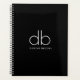 Ein einfaches, modernes, schwarzes Modell mit weißem Initial- und Namensmonogramm auf schwarz, mit eleganter klassischer Sans Serifentypografie.